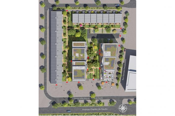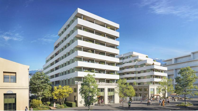 Logements neufs, réhabilitation et commerces font de ce projet un lieu de vie unique au sein d'un cadre de vie diversifié et apaisé, ouvert sur de vastes jardins paysagers et les montagnes environnantes.